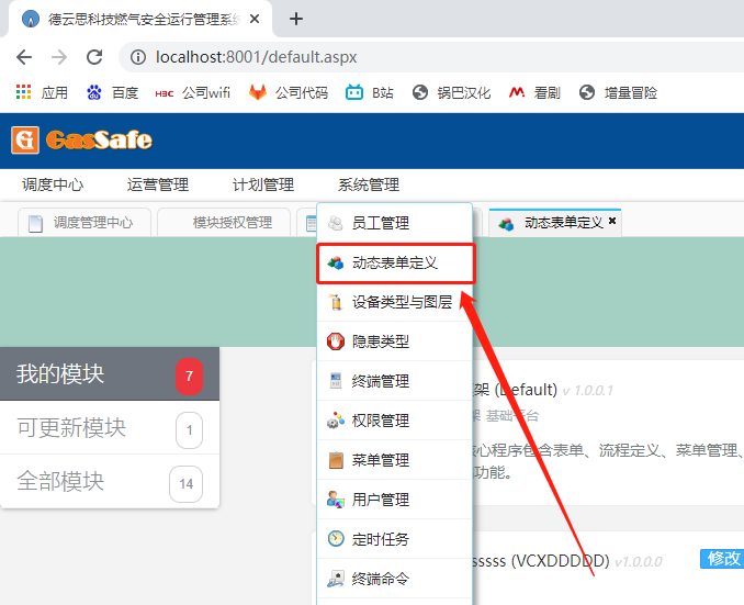 2.点击"动态表单定义"选项