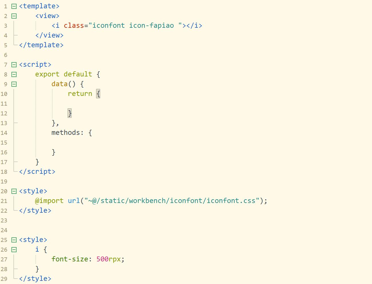 <template> <view> <i class="iconfont icon-heart"></i> <!-- 这里的 icon-heart 是你图标对应的类名 --> </view> </template> <style> /* 引入 Iconfont 样式文件 */ @import url('path/to/iconfont.css'); </style>注意,上述代码中的